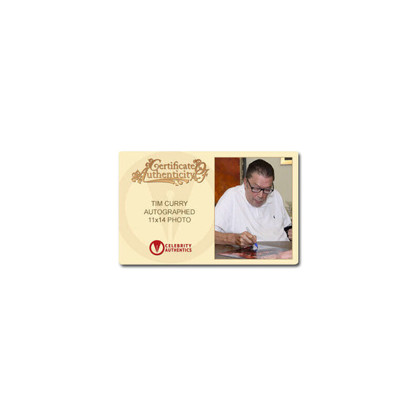 This 11x14 photo of Darkness from the 1985 film Legend has been personally hand-signed by Tim Curry during his signing with Celebrity Authentics. A young man must stop the Lord of Darkness (Tim Curry) from both destroying daylight and marrying the woman he loves in this classic fantasy adventure story. Ships affixed with Celebrity Authentics serial-numbered and tamper evident Authentication Hologram and includes Celebrity Authentics Certificate of Authenticity featuring picture of Mr. Curry signing photo. Please note: with multiples signed by the actor, a sample photo is used from stock to represent what you will receive. Exact autograph size and placement may vary.