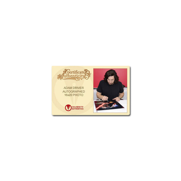 This 16x20 photo of Kylo Ren from Star Wars The Force Awakens has been personally hand-signed by Adam Driver during his signing with Celebrity Authentics. A dark warrior strong with the Force, Kylo Ren commands First Order missions with a temper as fiery as his unconventional lightsaber. As a leader of the First Order and a student of Supreme Leader Snoke, he seeks to destroy the New Republic, the Resistance and the legacy of the Jedi. Ships affixed with the Celebrity Authentics serial-numbered and tamper evident Authentication Hologram and includes Celebrity Authentics Certificate of Authenticity featuring a picture of Adam signing photo. Please note: with multiples signed by the actor, a sample photo is used from stock to represent what you will receive. Exact autograph size and placement may vary.