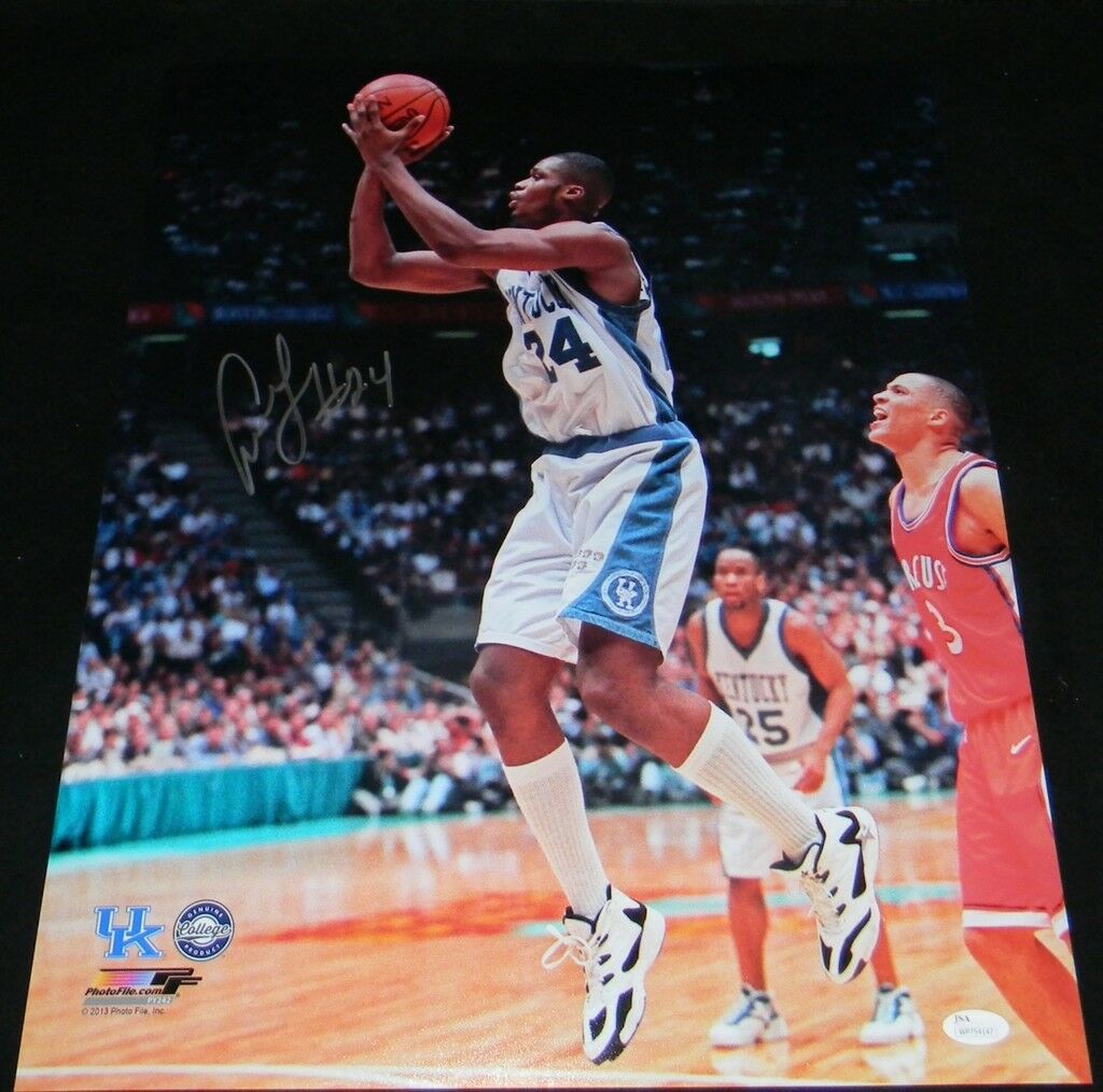 Antoine Walker, former All-American for the Kentucky Wildcats, has hand signed this 16x20 photo at a private signing. This item comes with a certificate of authenticity (COA) from JSA - James Spence Authentication and was signed in the presence of one of their representatives. You will receive a serial-numbered COA along with a matching serial-numbered sticker on the photo. The authenticity can be verified online by entering the serial number.Item pictured may not be the exact item you will receive. It will be similar quality, and we guarantee your satisfaction.