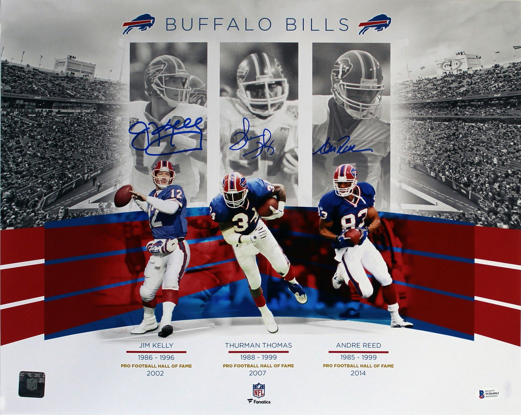 Bills (3) Kelly, Thomas & Reed Authentic Signed 16x20 Photo BAS Witnessed
