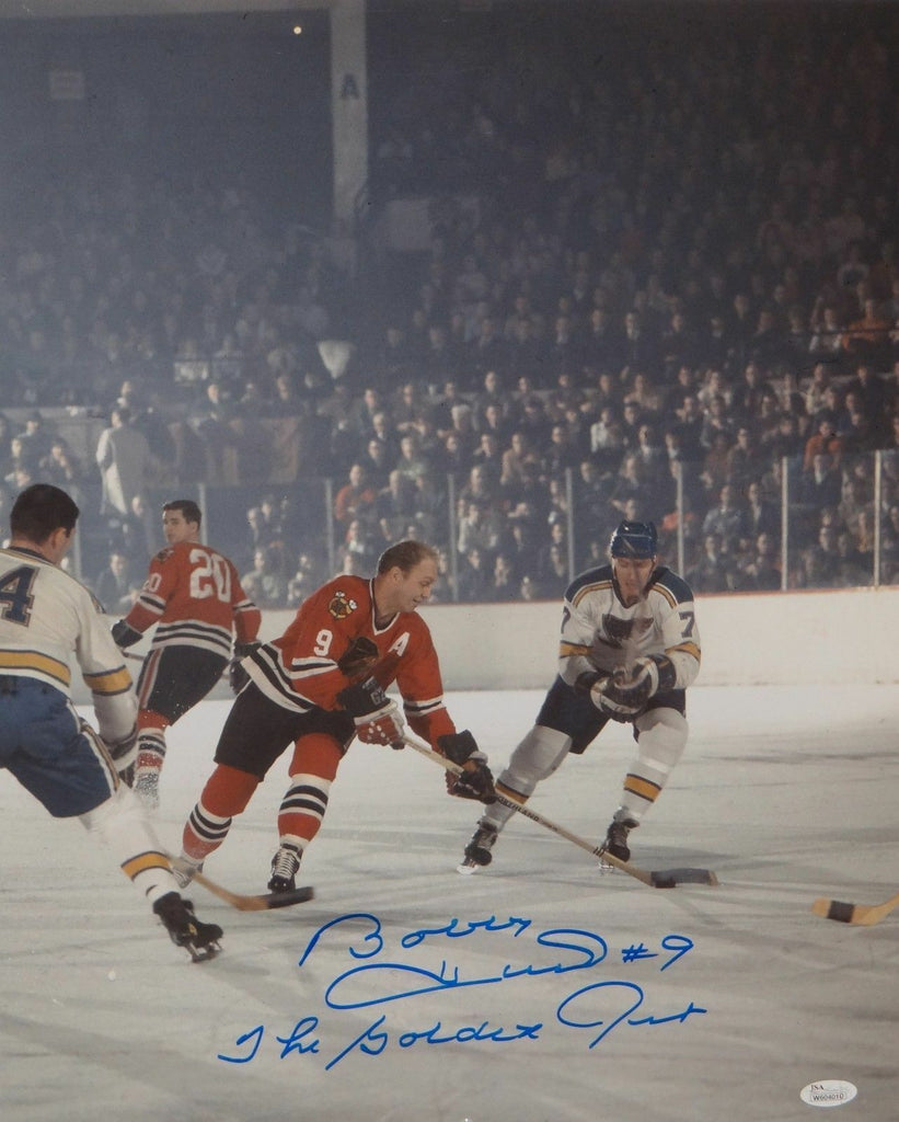 Bobby Hull Autographed 16x20 Photo Vs St Louis w/ The Golden Jet- JSA Auth