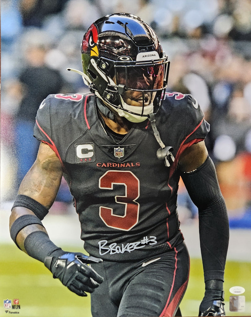 An 16x20 hand signed color photo of Arizona Cardinals All Pro Safety BUDDA BAKER. The signature is in White paint pen. This would make a great addition to any Cardinals collection. This item was signed at a private signing with us. This item is guaranteed to be 100% authentic and will include a COA from JSA authentication.