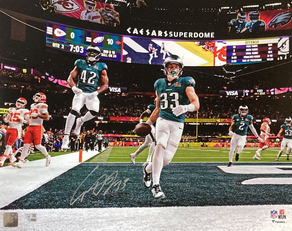 Featured is a Cooper DeJean signed 16x20 Philadelphia Eagles photo. This photo has been hand signed by DeJean and comes with the Fanatics hologram. This photo would make a great addition to any sports memorabilia collection!. SPECIFICATIONS Autographed By: Cooper DeJean Team: Philadelphia Eagles Sport: Football Authentication: Fanatics Authentic
