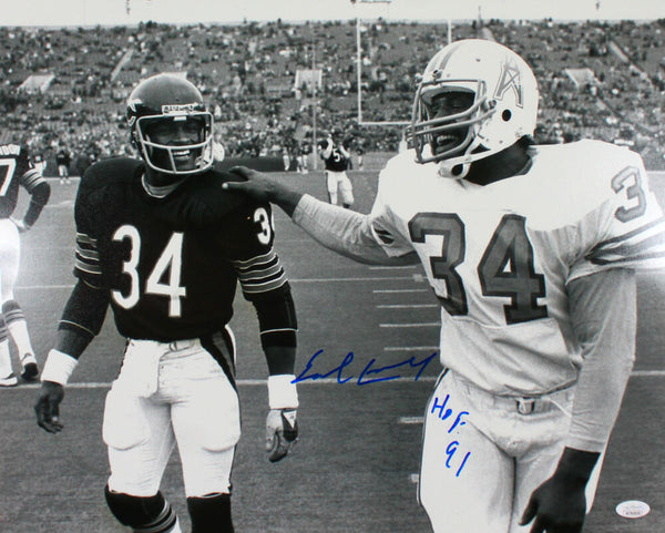 Earl Campbell HOF Signed Oilers 16x20 With Walter Payton Photo- JSA W Auth *DRK BLUE This is a Hand Autographed 16x20 Photo of Earl Campbell of The Houston Oilers. This item has a James Spence Witness Authentication, which Comes with a JSA #'ed Sticker and a Matching JSA COA. You can view this item on the SpenceLOA website, it shows when and where the item was signed. It was signed either at a public autograph appearance or a Private Signing. This is a stock photo of the item. Although you may not receive this exact item, the item you receive is virtually identical and brand new in great shape.