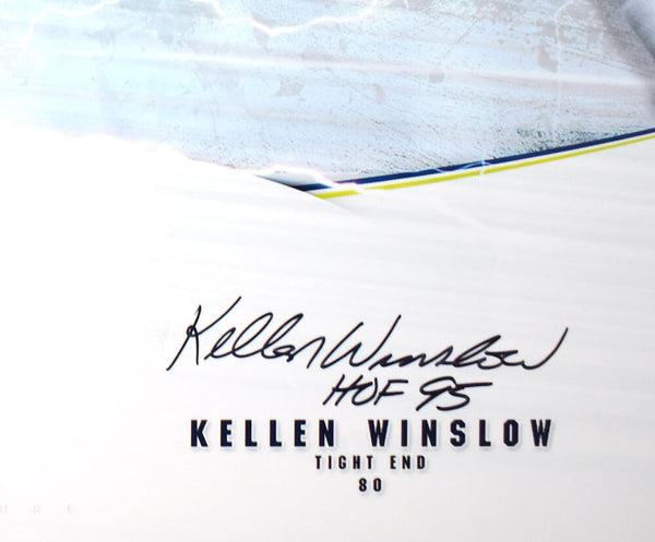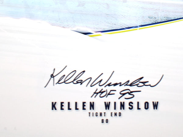 Fouts, Joiner, Winslow Autographed Chargers 16x20 Air Coryell Photo w/ HOF- Beckett W Hologram This is a Hand Autographed 16x20 Photo of Dan Fouts, Kellen Winslow and Charlie Joiner from the San Diego Chargers and each inscribed HOF. This item has a Beckett Witness Authentication, which comes with a numbered sticker hologram and a QR code for verification. You can view this item on the Beckett website and it shows when and where the item was signed. It was signed either at a public autograph appearance or a Private Signing. This is a stock photo of the item. Although you may not receive this exact item, the item you receive is virtually identical and brand new in great shape.