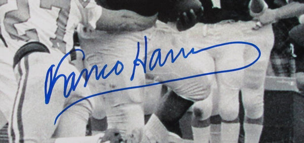 Franco Harris HOF Autographed 16x20 B/W Photo Penn State. This photo is authenticated by BAS/Beckett and includes their Tamper-proof Sticker.