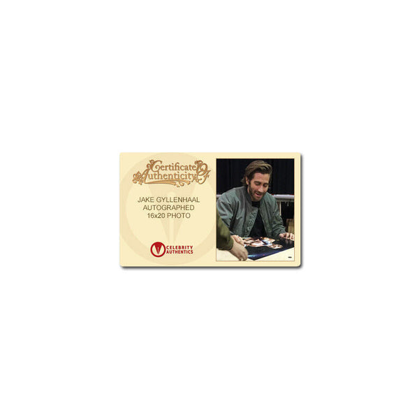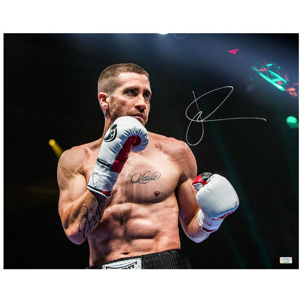 This 16x20 photo of Jake Gyllenhaal as Billy Hope from Southpaw has been personally hand-signed by Jake Gyllenhaal during his signing with Celebrity Authentics. Photo ships affixed with Celebrity Authentics serial-numbered and tamper evident Authentication Hologram and includes Celebrity Authentics Certificate of Authenticity featuring picture of Jake signing photo. Please note: with multiples signed by the actor, a sample photo is used from stock to represent what you will receive. Exact autograph size and placement may vary.