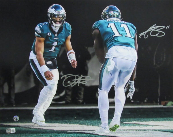 Jalen Hurts/A.J. Brown Dual-Signed 16x20 Photo Eagles. This photo is authenticated by BAS/Beckett and includes their tamper-proof hologram sticker.