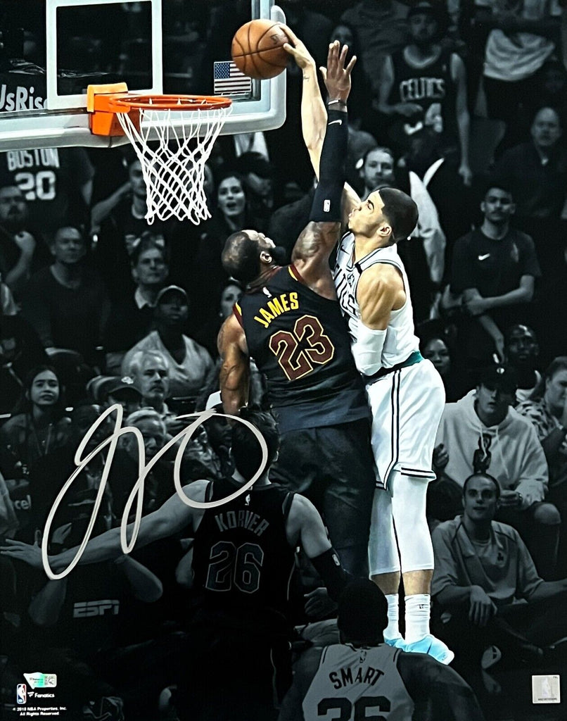 Jayson Tatum Celtics Signed Dunk Over LeBron James Spotlight 16x20 Fanatics
