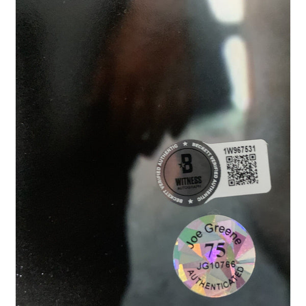 This Autographed 16x20 Photo with the inscription of "Hey kid, Catch (Greene), Thanks Mean Joe! (Okon)" has been Personally Signed by Joe Greene & Tommy Okon. This item is 100% Authentic to include a hologram by Beckett Authentication Services. This item will come with the new Beckett Authentication hologram that has a scannable QR code rather than the traditional COA. If you would like to have a COA, you are welcome to reach out to Beckett for a printed certification once you receive your item. This is a BAS Witnessed Protection Program item which means a Beckett Authentication Service representative was present when this item was being signed. We conducted an autograph signing with Joe Greene & Tommy Okon where multiples of the same item were signed. While the photographs are representative of this item, the size, placement and strength of the signature may vary. Each item is hand signed, therefore, each autograph is unique. This item can be verified through BAS Witnessed. This item also contains a certificate of authenticity from Denver Autographs.FREE SHIPPING within the USA on orders over $10!