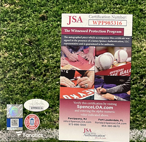 Featured is a Johnny Manziel signed 16x20 Texas A&M Aggies football photo in which he added the "12 Heisman" inscription. This photo was hand signed by Johnny Manziel in the presence of a JSA authentication representative. Included with the photo is a JSA witnessed hologram and certificate of authentication. This item would make a great addition to any sports memorabilia collection. SPECIFICATIONS Autographed By: Johnny Manziel Team: Texas A&M Aggies Sport: Football Authentication: James Spence Authentication (JSA)