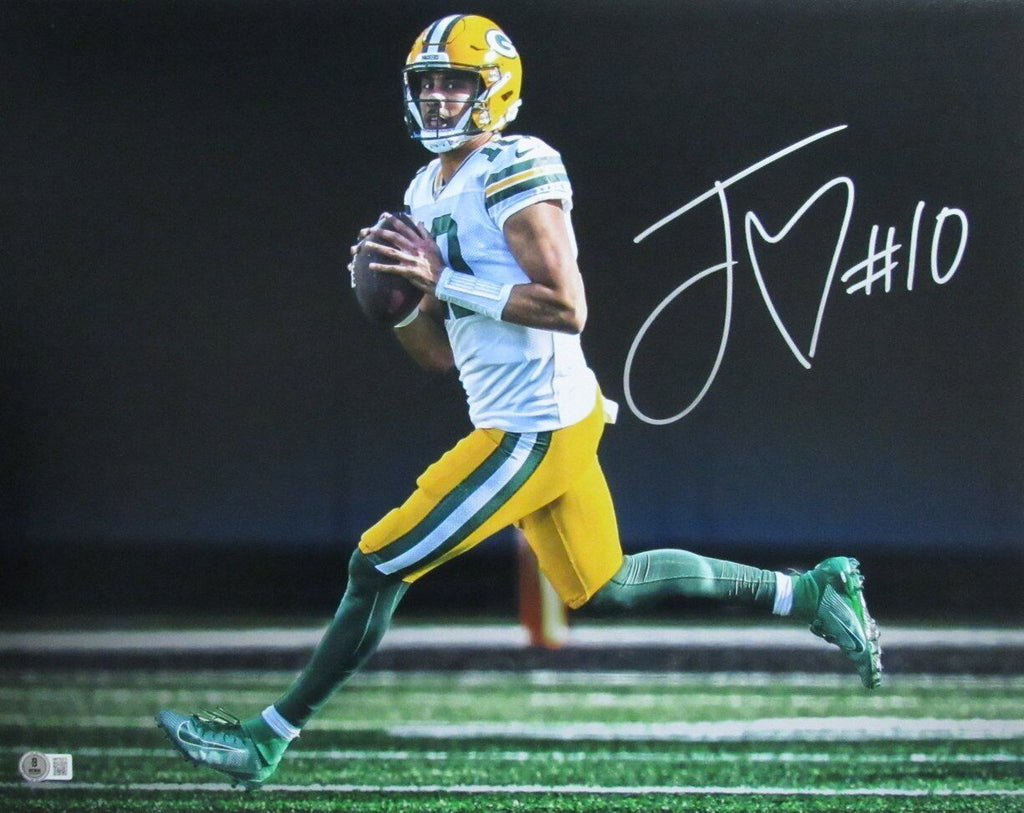 Jordan Love Green Bay Packers Autographed 16x20 Photo. This photo is authenticated by Beckett Witness and includes their Tamper-proof Hologram Sticker.
