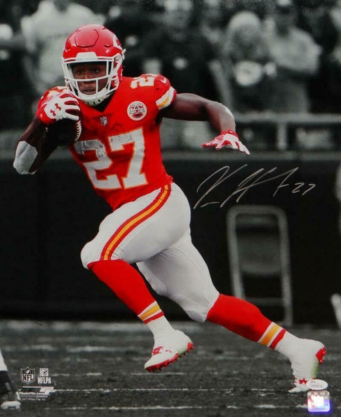 Kareem Hunt Autographed KC Chiefs 16x20 BW & Color PF Photo- JSA W Auth *Silver This is a Hand Autographed 16x20 Photo File Photo of Kareem Hunt of the Kansas City Chiefs. This item has a James Spence Witness Protection Authentication, which comes with a JSA #'ed sticker and a matching JSA Certificate of Authenticity. You can view this item on the SpenceLOA website and it shows when and where the item was signed. It was signed either at a public autograph appearance or a private signing. This is a stock photo of the item. Although you may not receive this exact item, the item you receive is virtually identical and brand new in great shape.
