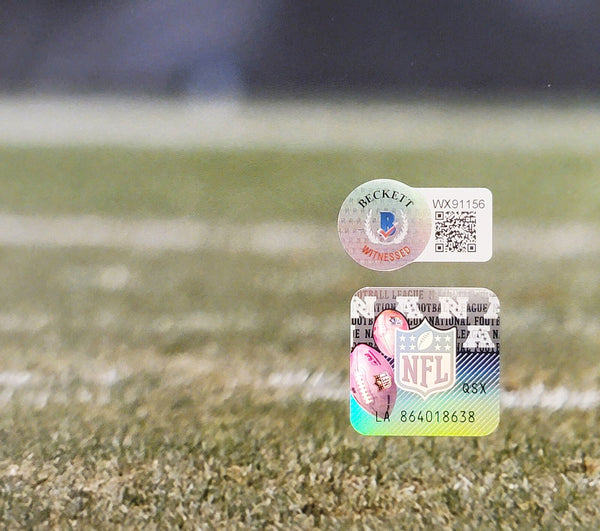 This is a 16x20 Photo that has been hand signed by Kenny Pickett. This item has been witnessed and certified authentic by Beckett Authentication (BAS) and comes with their tamper-proof witness sticker. Beckett Authentication has recently changed their physical certificate card policy where they no longer match their tamper-proof sticker with a physical certificate. A certificate can be printed on Beckett's website for the matching authentication number.