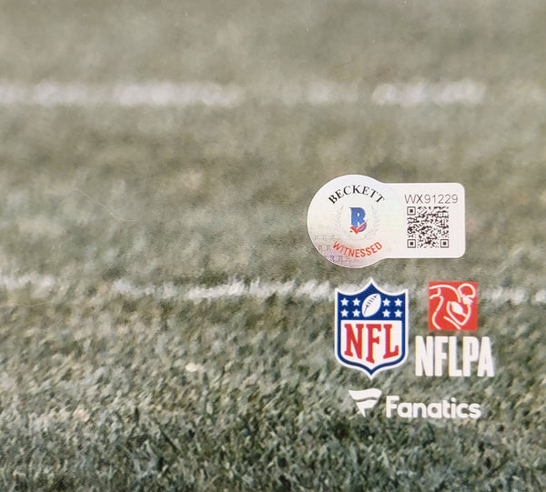 This is a 16x20 Photo that has been hand signed by Kenny Pickett. This item was inscribed "1st NFL TD 10/2/22." This item has been witnessed and certified authentic by Beckett Authentication (BAS) and comes with their tamper-proof witness sticker. Beckett Authentication has recently changed their physical certificate card policy where they no longer match their tamper-proof sticker with a physical certificate. A certificate can be printed on Beckett's website for the matching authentication number.