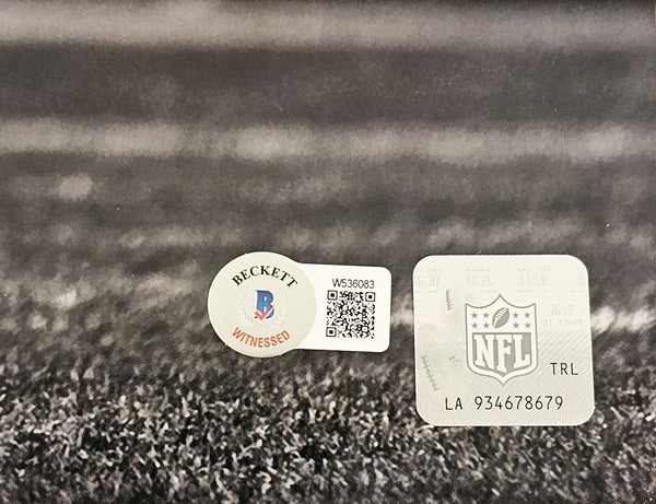 This is a 16x20 Photo that has been hand signed by Kenny Pickett. This item has been witnessed and certified authentic by Beckett Authentication (BAS) and comes with their tamper-proof witness sticker.