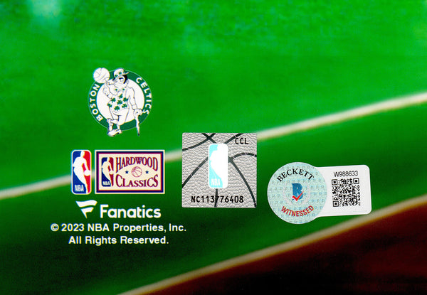 This is a 16x20 Photo that has been hand signed by Larry Bird. This item has been witnessed and certified authentic by Beckett Authentication (BAS) and comes with their tamper-proof witness sticker.
