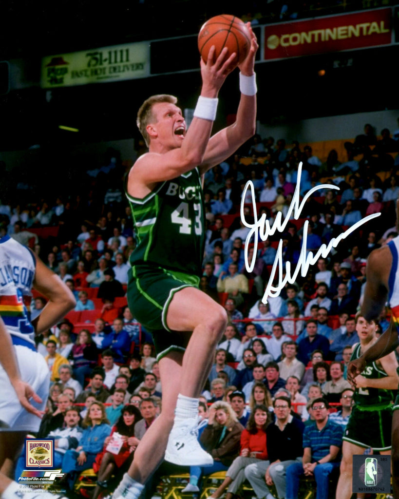 A 16x20 hand signed photo of former Milwaukee Bucks legend JACK SIKMA. The signature is in White paint pen. This photo was signed at a public signing with us. This would make a great addition to any Bucks collection! This item is guaranteed to be 100% authentic and will include a COA from Waukesha Sportscards with matching serial numbered holograms.