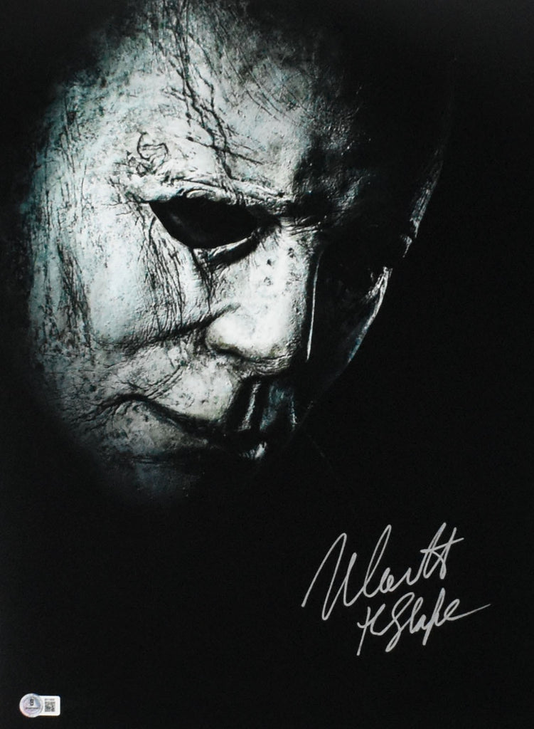 *Vertical* This is a hand autographed 16x20 photo of Nick Castle as Michael Myers from Halloween. Inscribed The Shape. This item has a Beckett Authentication, which comes with a Beckett numbered hologram and a QR code for verification. You can view this item on the Beckett website. It was signed either at a public autograph appearance or a private signing. Although you may not receive this exact item, the item you receive is virtually identical and brand new in great shape. *Vertical* This is a hand autographed 16x20 photo of Nick Castle as Michael Myers from Halloween. Inscribed The Shape. This item has a Beckett Authentication, which comes with a Beckett numbered hologram and a QR code for verification. You can view this item on the Beckett website. It was signed either at a public autograph appearance or a private signing. Although you may not receive this exact item, the item you receive is virtually identical and brand new in great shape.