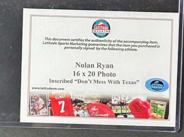 Own a Piece of Baseball History This museum-quality 16x20 photograph captures one of the most iconic moments in baseball history--the legendary Nolan Ryan brawl with Robin Ventura on August 4, 1993. At 46 years old, the Texas Rangers pitcher put the 26-year-old Chicago White Sox third baseman in a headlock, creating an unforgettable image that defines toughness and Texas grit. Authenticity You Can Trust Hand-signed and inscribed by Nolan Ryan with "Don't Mess with Texas" Tri-Star authentication with tamper-proof hologram and certificate Premium 16x20 photograph on professional-grade photo paper Crystal-clear image quality showcasing this legendary moment The Story Behind the Moment When Robin Ventura charged the mound after being hit by a pitch, he learned a hard lesson about Texas baseball. Ryan, a Hall of Famer and one of the greatest pitchers of all time, delivered six punches while holding Ventura in a headlock--a moment that became an instant classic and symbol of old-school baseball justice. Perfect For Serious baseball memorabilia collectors Texas Rangers fans and Nolan Ryan enthusiasts Man cave or office display Investment-grade sports collectibles This authenticated piece celebrates the toughness, competitiveness, and legendary status of Nolan Ryan--the strikeout king who proved age is just a number.