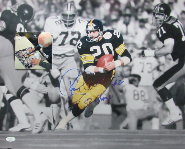 Rocky Bleier Pittsburgh Steelers Signed/Inscribed "4X SB Champs" 16x20 Photo. This photo is authenticated by JSA and includes their Tamper-proof Sticker and Certificate of Authenticity.