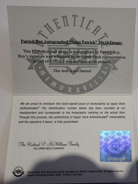 This autographed photo of Patrick Roy, the legendary hockey goaltender, is a must-have for any Montreal Canadiens fan. The 16x20 photo, taken in 1986, features Roy's signature and is authenticated by Upper Deck. This original print is a great addition to any sports memorabilia collection and is perfect for display in a home or office. The photo captures Roy's triumphant moment as the 1986 Stanley Cup Champion and Conn Smythe award-winner. As one of the greatest goaltenders in NHL history, Roy's autograph is highly sought after by collectors. Don't miss the chance to own a piece of hockey history with this authentic and authenticated autographed photo.