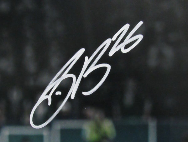 Saquon Barkley Autographed 16x20 Photo Philadelphia Eagles. This photo is authenticated by Beckett and includes their tamper-proof sticker. This photo was autographed in the presence of a Beckett Representative.