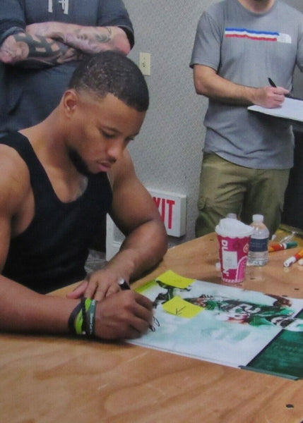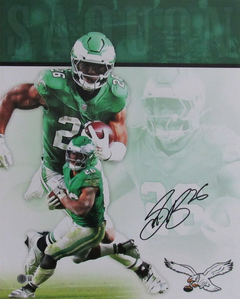 Saquon Barkley Autographed 16x20 Photo Philadelphia Eagles. This photo is authenticated by Beckett and includes their tamper-proof sticker. This photo was autographed in the presence of a Beckett Representative.