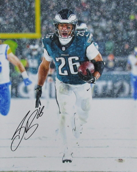 Saquon Barkley Signed/Autographed 16x20 Photo Philadelphia Eagles. This photo is authenticated by PSA/DNA and includes their tamper-proof sticker. This photo was autographed in the presence of a PSA/DNA Representative.