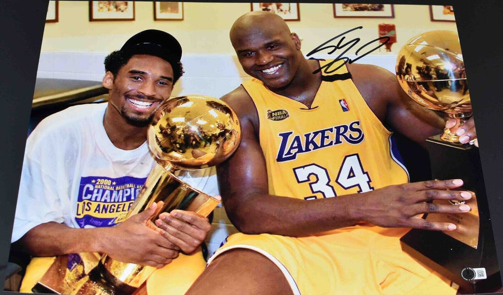 SHAQUILLE SHAQ O'NEAL AUTOGRAPHED LOS ANGELES LAKERS 16x20 PHOTO W/ KOBE BRYANT