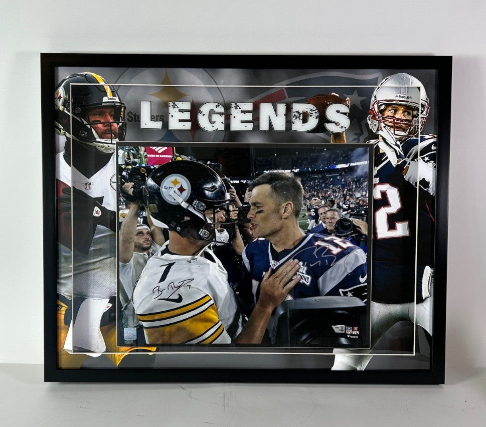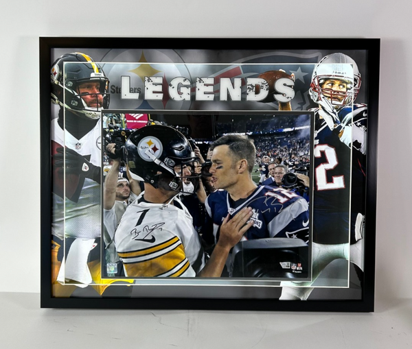 NFL Legends Dual Autographed LED Display - Brady & Roethlisberger Own a piece of NFL history! This exclusive 16x20 LED-illuminated display features authentic signatures from two of football's greatest quarterbacks: Tom Brady - 7x Super Bowl Champion, 5x Super Bowl MVP, NFL GOAT Ben Roethlisberger - 2x Super Bowl Champion, Steelers legend, Big Ben Premium Features: LED backlighting creates stunning visual impact 16x20 professional display size Fanatics Certificate of Authenticity included Ready to hang and display Perfect for man caves, offices, or sports rooms Why This Piece is Special: This rare dual-signed piece celebrates the careers of two quarterbacks who defined an era of NFL excellence. Brady's unprecedented seven Super Bowl victories and Roethlisberger's clutch performances for Pittsburgh make this a must-have for serious collectors and NFL fans alike. The LED illumination adds a modern touch that makes the signatures pop, creating a conversation piece that commands attention in any room. Whether you're a Patriots fan, Steelers fan, or simply appreciate football greatness, this authenticated piece represents the pinnacle of quarterback excellence.Custom LED Frame measures 31.5"W x 25.5"H outer dimensions.