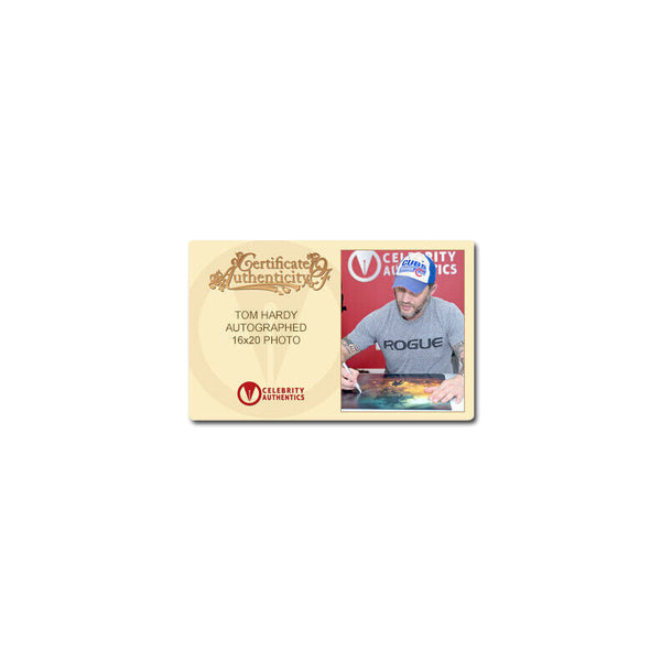 Celebrity Authentics is the exclusive autograph partner of Tom Hardy. Please be aware most other online autographs purported to be Mr. Hardy's are forgeries. Mr. Hardy has only signed with Celebrity Authentics so be sure the item you choose is affixed with the Celebrity Authentics Authentication Hologram for his genuine signature.This 2015 Mad Max: Fury Road 16x20 Photo featuring Tom Hardy as Max Rockatansky has been personally hand signed by Tom during his signing with Celebrity Authentics. Years after the collapse of civilization, the tyrannical Immortal Joe enslaves apocalypse survivors inside the desert fortress the Citadel. When the warrior Imperator Furiosa (Charlize Theron) leads the despot's five wives in a daring escape, she forges an alliance with Max Rockatansky (Tom Hardy), a loner and former captive. Fortified in the massive, armored truck the War Rig, they try to outrun the ruthless warlord and his henchmen in a deadly high-speed chase through the Wasteland. This fantastic photo ships affixed with Celebrity Authentics serial-numbered Authentication hologram and includes Celebrity Authentics Certificate of Authenticity featuring picture of Tom signing photo. Please note: with multiples signed by the actor, a sample photo is used from stock to represent what you will receive. Exact autograph size and placement may vary.