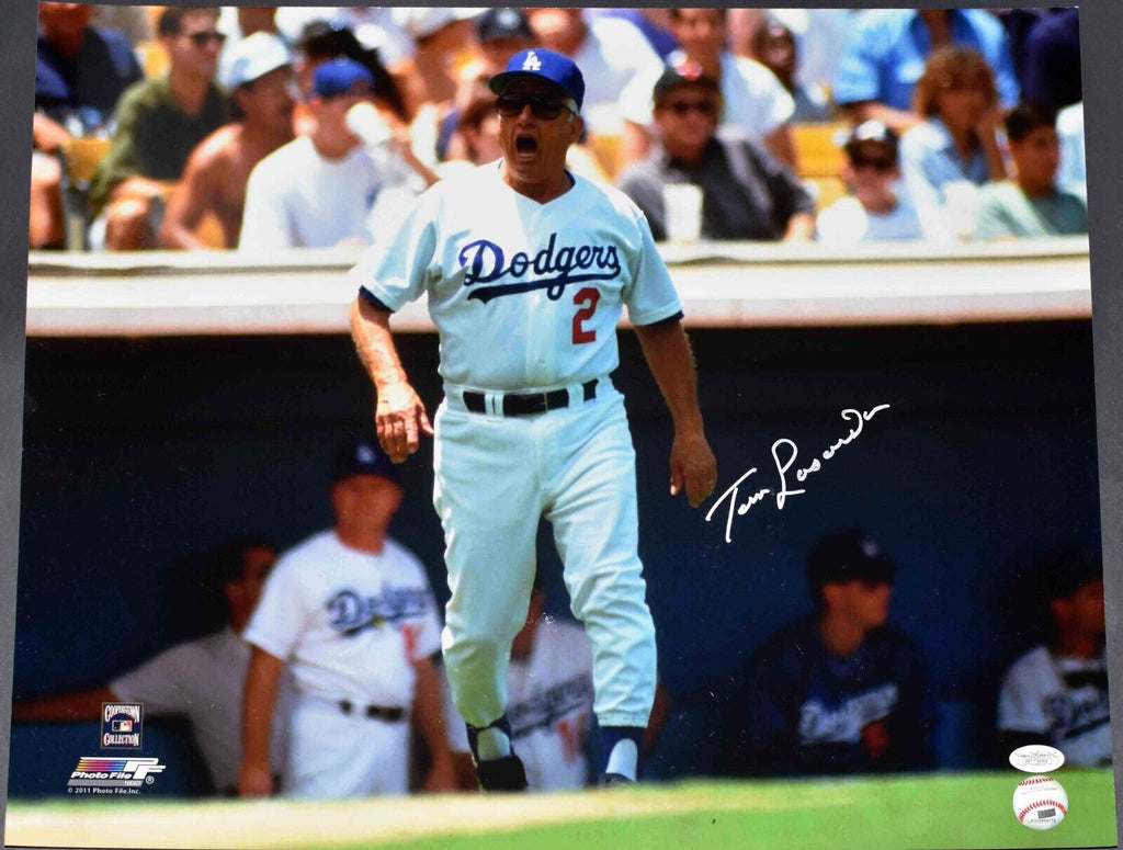 Tommy Lasorda, former Hall of Fame manager of the Los Angeles Dodgers, has hand signed this 16x20 photo at a private signing. This item comes with a certificate of authenticity (COA) from JSA - James Spence Authentication and was signed in the presence of one of their representatives. You will receive a serial-numbered COA along with a matching serial-numbered sticker on the photo. The authenticity can be verified online by entering the serial number.Item pictured may not be the exact item you will receive. It will be similar quality, and we guarantee your satisfaction.