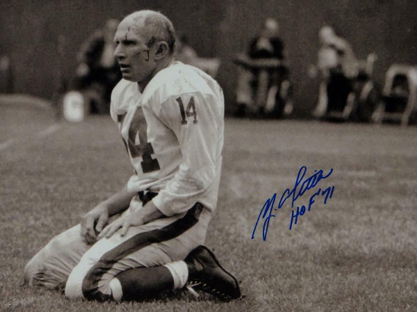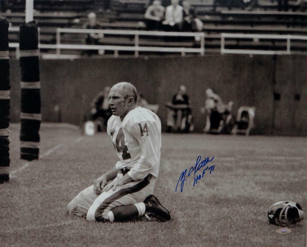 Y.A. Tittle Autographed New York Giants 16x20 On Knees Photo W/ HOF-Tristar Auth This is a Hand Autographed 16x20 Photo of Y. A. Tittle of The New York Giants. This item has a Tristar Authentication, which Comes with a #'ed Hologram and COA. You can view this item on the Tristar website. It was signed either at a public autograph appearance or a Private Signing. This is a stock photo of the item. Although you may not receive this exact item, the item you receive is virtually identical and brand new in great shape.