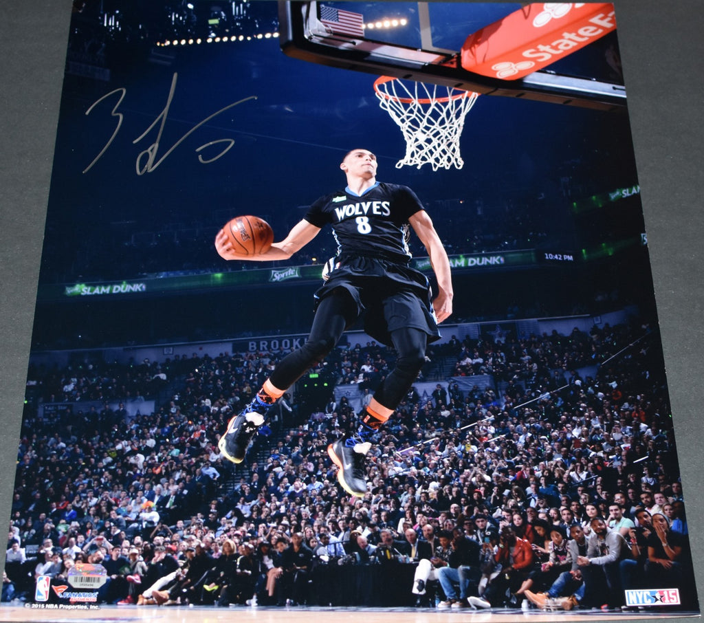 Zach LaVine, former All-Star guard for the Minnesota Timberwolves, has hand signed this 16x20 photo at a private signing. This item comes with a serial-numbered hologram from Fanatics Authentic, one of the leaders in the industry. The authenticity can be verified online by entering the serial-number. A Fanatics Authentic information card is also included.Item pictured may not be the exact item you will receive. It will be similar quality, and we guarantee your satisfaction.