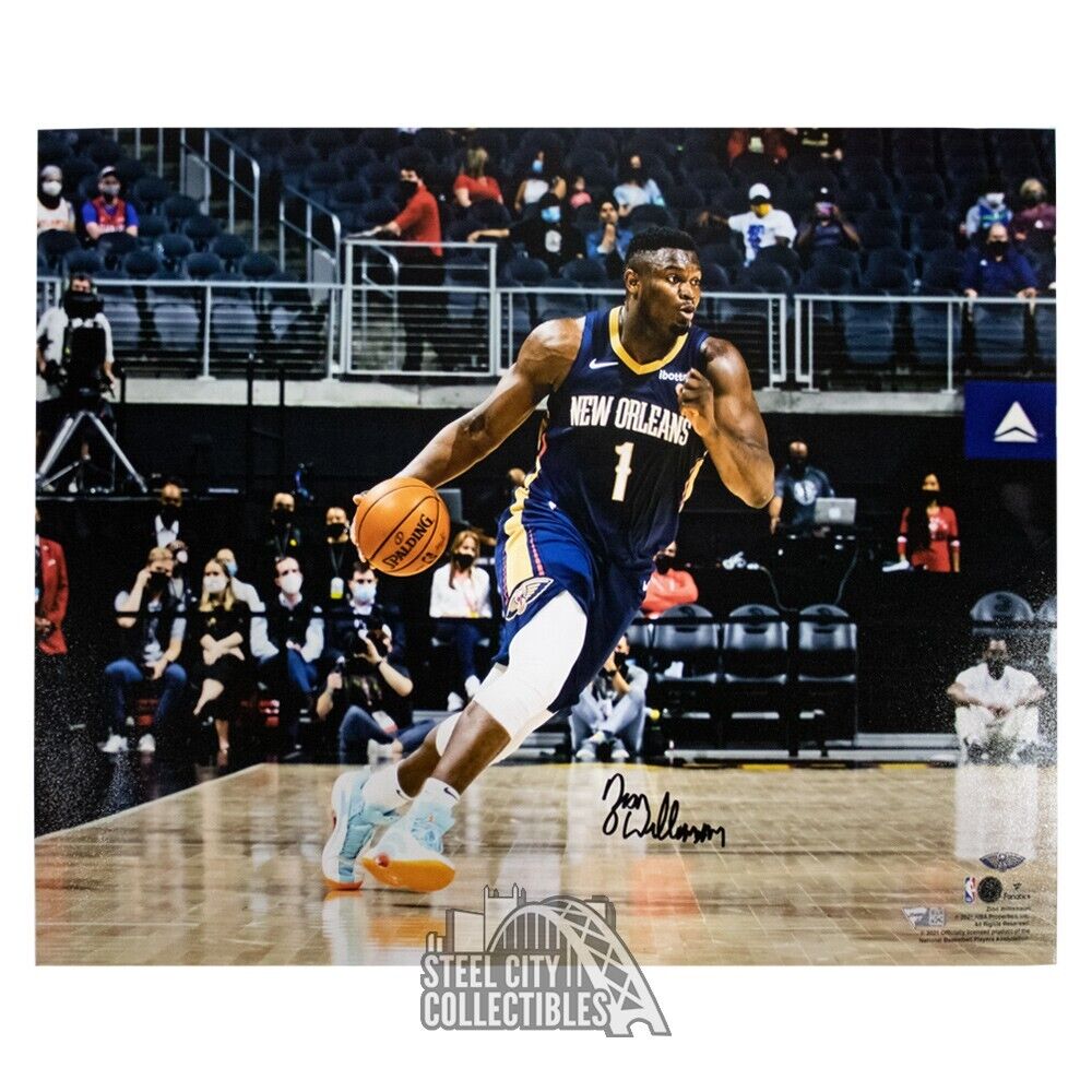 This Zion Williamson autographed 16x20 photo comes authenticated by Fanatics.