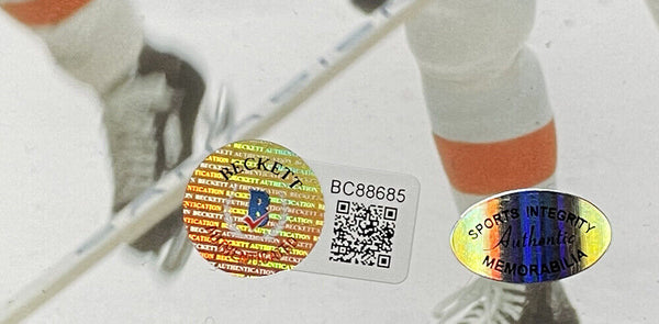 Featured is a Bill Barber signed Philadelphia Flyers 8x10 photo. This photo was hand signed by Bill Barber and has been authenticated by Beckett authentication services. Included with the photo is a Beckett hologram and certificate of authentication. This photo would make a great additional to any sports memorabilia collection.. SPECIFICATIONS Autographed By: Bill Barber Team: Philadelphia Flyers Sport: Hockey Authentication: Beckett Grading Services