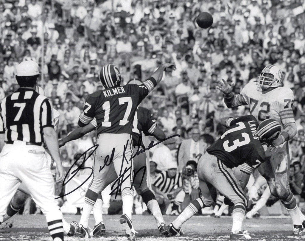 This is an 8x10 Photo that has been hand signed by Billy Bill Kilmer. This item is guaranteed to pass any third party authentication company including Beckett, PSA/DNA, & JSA authentication.