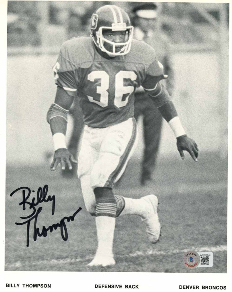 The number in the listing title is just an inventory sku for our records and is not the authentication number. This is the exact item that you will receive so please see pictures for condition. This is an 8x10 photo that was personally autographed by Billy Thompson. Includes a certificate of authenticity from Beckett Authentication Services (BAS) and Denver Autographs.
