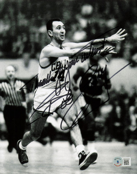 This is an 8x10 Photo that has been hand signed by Bob Cousy. This item was inscribed "Thanks For Your Wishes." This item has been certified authentic by Beckett Authentication (BAS) and comes with their tamper-proof QR Code hologram.