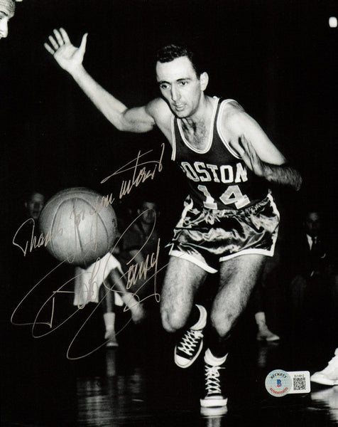 This is an 8x10 Photo that has been hand signed by Bob Cousy. This item was inscribed "Thanks For Your Wishes." This item has been certified authentic by Beckett Authentication (BAS) and comes with their tamper-proof QR Code hologram.