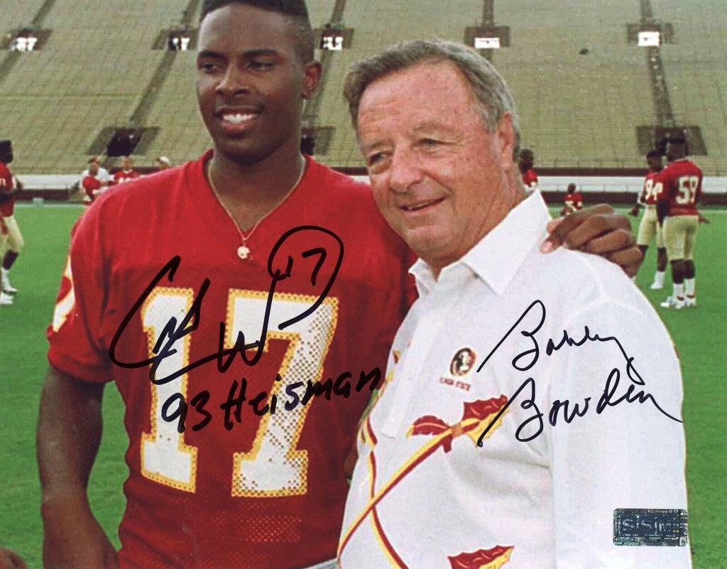 Bobby Bowden and Charlie Ward have each hand signed this 8x10 photo at a private signing. This item comes with a certificate of authenticity (COA) from Signature Sports Marketing, one of the leaders in the industry. You will receive a paper COA along with matching serial-numbered holograms.Item pictured may not be the exact item you will receive. It will be similar quality, and we guarantee your satisfaction.