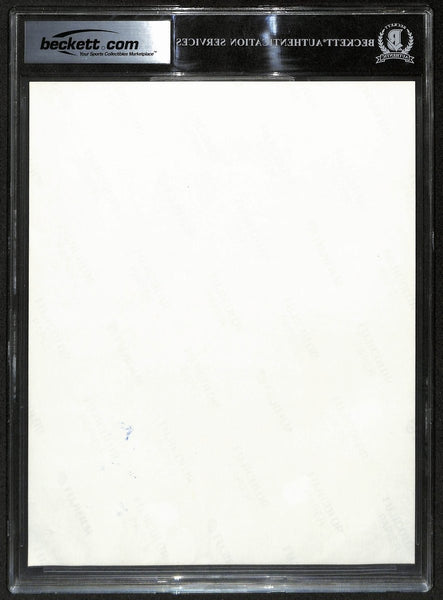 Terry Bradshaw & Mike Webster Signed 8x10 Photo - Hall of Fame 1997 - Beckett 10. Capture a legendary moment in football history with this vibrant 10" x 8" satin-finish color photo featuring Hall of Famers Terry Bradshaw and Mike Webster at the 1997 Pro Football Hall of Fame induction ceremony. Both icons have signed the photo in bold blue felt tip, adding personal flair to this historic keepsake. Professionally encapsulated and authenticated by Beckett Authentication Services, this piece boasts a flawless Autograph Grade of 10. Condition: Very Fine - a pristine addition to any serious sports memorabilia collection.