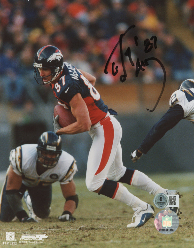 This Autographed 8x10 Photo with the inscription of "87" has been Personally Signed by Ed McCaffrey of the Denver Broncos. This item is 100% Authentic to include a hologram by Beckett Authentication Services. This item will come with an affixed Beckett Authentication Services (BAS) authentication sticker, which includes a scannable QR code to verify authenticity. Please note that Beckett no longer provides serial-numbered COA cards, and the attached BAS sticker will serve as the complete authentication for this item. The authenticity can be verified on Beckett Authentication Services website.