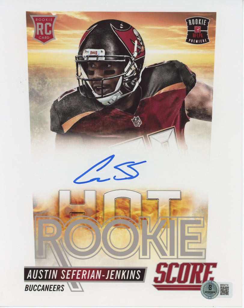 This Autographed 8x10 Photo has been Personally Signed by Austin Seferian-Jenkins of the Tampa Bay Buccaneers. This item is 100% Authentic to include a hologram by Beckett Authentication Services. This item will come with an affixed Beckett Authentication Services (BAS) authentication sticker, which includes a scannable QR code to verify authenticity. Please note that Beckett no longer provides serial-numbered COA cards, and the attached BAS sticker will serve as the complete authentication for this item. The authenticity can be verified on Beckett Authentication Services website.