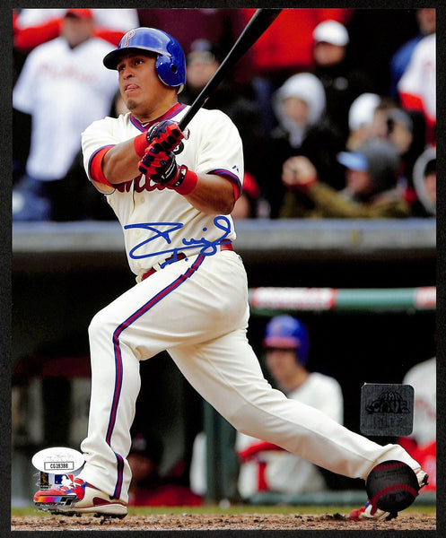 Carlos Ruiz Signed/Autographed 8x10 Photo Philadelphia Phillies. This photo is authenticated by JSA and includes their Tamper-proof Hologram Sticker and Certificate of Authenticity.
