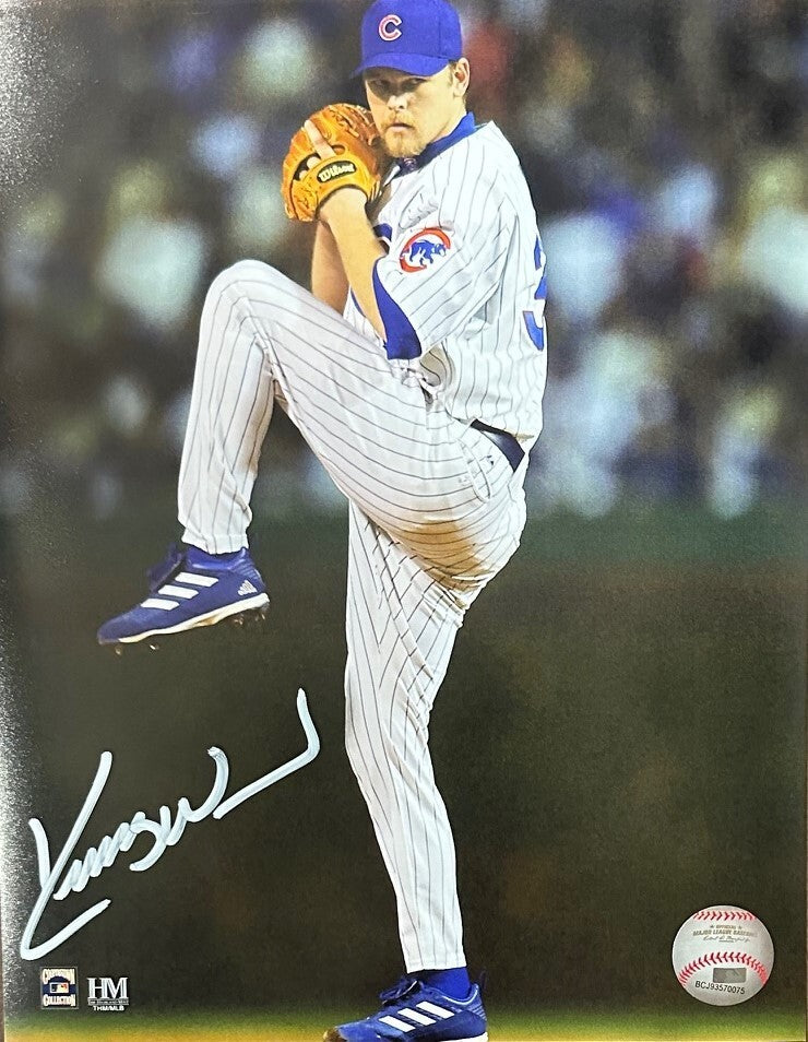 An 8x10 hand signed photo of Chicago Cubs Rookie of the Year Pitcher KERRY WOOD. The signature is in White paint pen. This photo was signed at a private signing with us. This would make a great addition to any Cubs collection! This item is guaranteed to be 100% authentic and will include a COA from Waukesha Sportscards with matching serial numbered holograms.