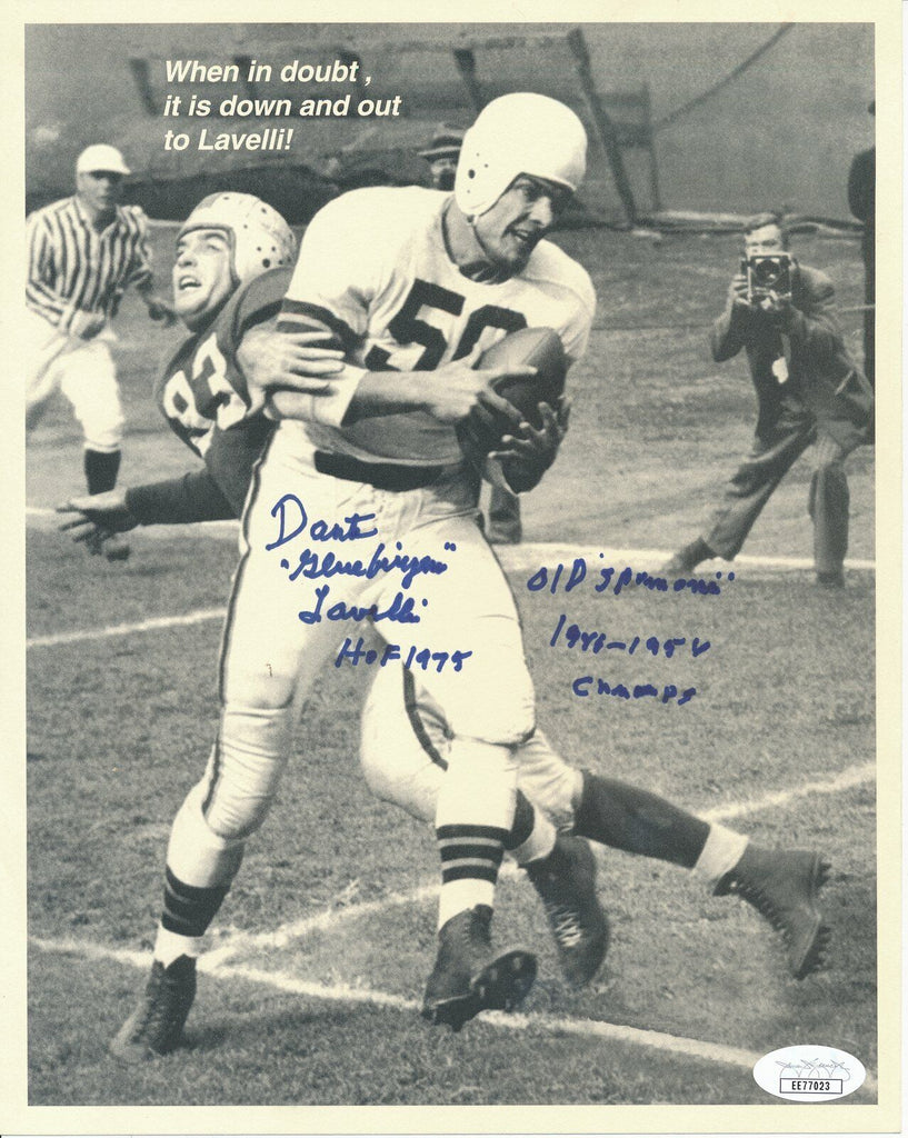 Dante Glue Fingers Lavelli Browns HOF Signed/Inscribed "HOF 1975" 8x10 B/W Photo. This photo is authenticated by JSA and includes their Tamper-proof Sticker and Certificate of Authenticity.