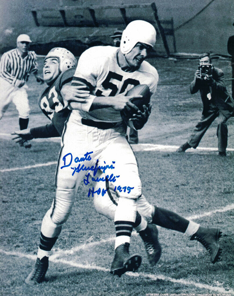 Dante Lavelli Autographed/Signed Cleveland Browns 8x10 Photo 27860 This is an 8x10 photo that was personally autographed by Dante Lavelli. This photo includes a certificate of authenticity from Denver Autographs.