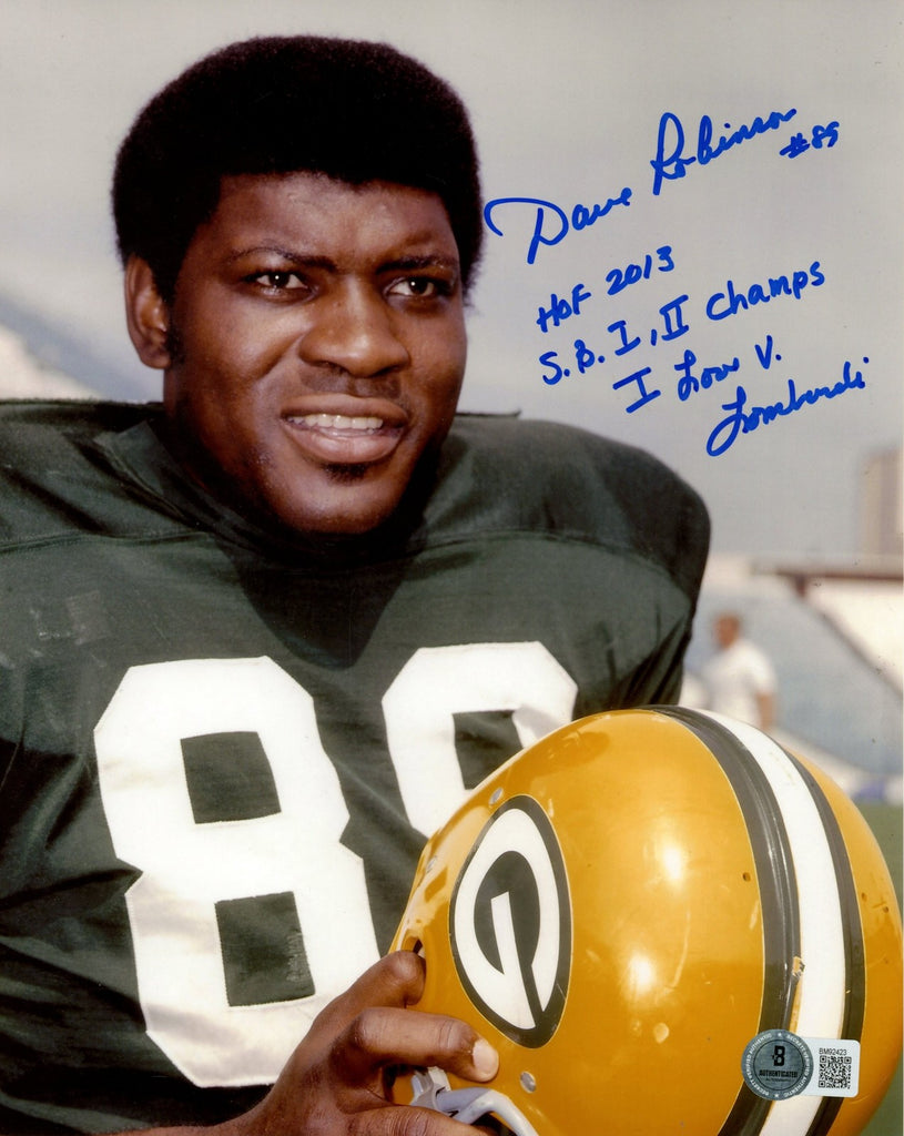 The number in the listing title is just an inventory sku for our records and is not the authentication number. The item pictured is the exact item you will receive, please see photos for condition. This is a Green Bay Packers 8x10 Photo that was personally autographed by Dave Robinson includes "HOF 13","SB I II Champs", and"I Love V. Lombardi" inscriptions. Includes a certificate of authenticity from Beckett Authentication Services (BAS) and Denver Autographs. FREE SHIPPING within the USA on orders over $10!